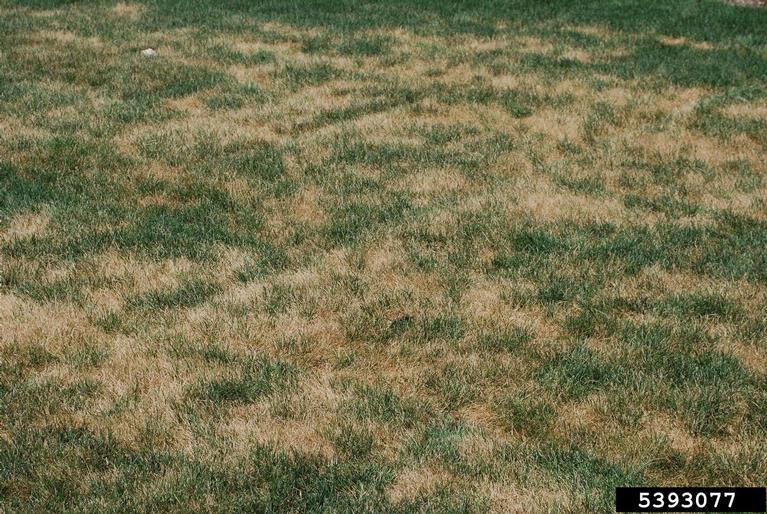 A Kentucky bluegrass (Poa pratensis) lawn showing symptoms of necrotic ring spot infection. Howard F. Schwartz, Colorado State University, Bugwood.org